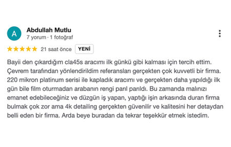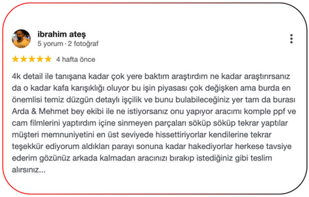 Aracınızın ilk gün ki değerini ve estetiğini dünyanın en iyi ürünleri ile koruma altına alıyoruz.İşimizi severek yapıyor aracınızdaki değişimleri görmekten keyif alıyoruz.